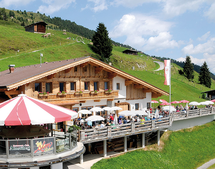 Große Sonnenterasse mit herrlichen Panoramablick und Tiroler Schmankerln und ein Kinderspielplatz