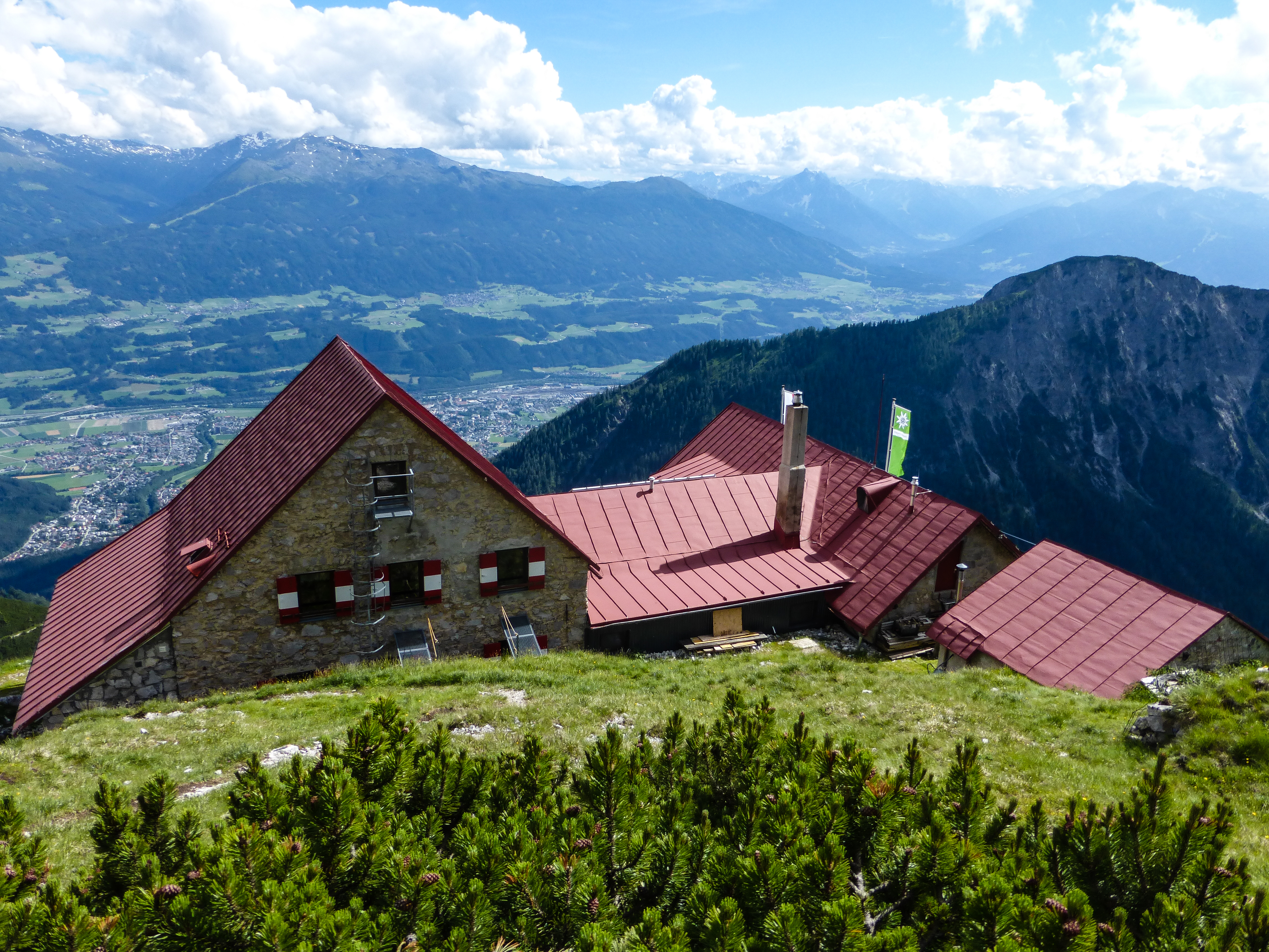 Die Hütte liegt im Karwendel, hoch über dem Halltal und ist ein zentraler Punkt für viele schöne und erlebnisreiche Gipfel-, Wander- und Bergsteigertouren.