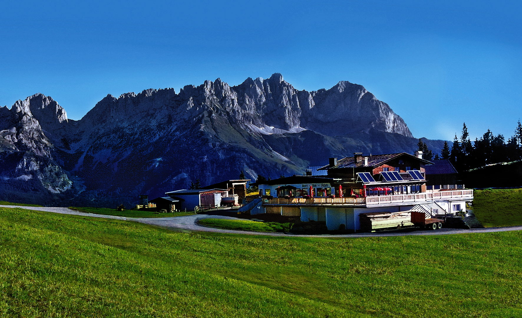 Nebenbei, nahezu in der Mitte platziert, der bizarre, massive Kalk-Gebirgsblock “Wilder Kaiser”. Für den Wanderer bedeutet das eine Vielzahl von unterschiedlichen Möglichkeiten - von sanften Grasrücken, über steinige Geröllfelder bis hin zu markanten Felswänden. Lassen Sie sich von atemberaubenden Aussichten beeindrucken.