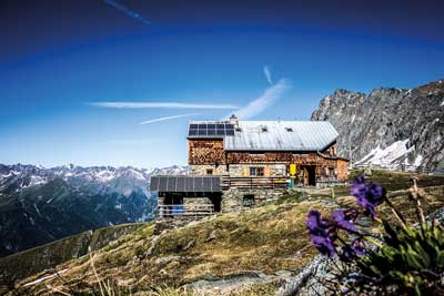 16 Betten, 38 Bergsteigerlager , WC, Waschräume, Ge­päck­transport, Sonnenterrasse, für Gruppen Anmel­dung erbeten