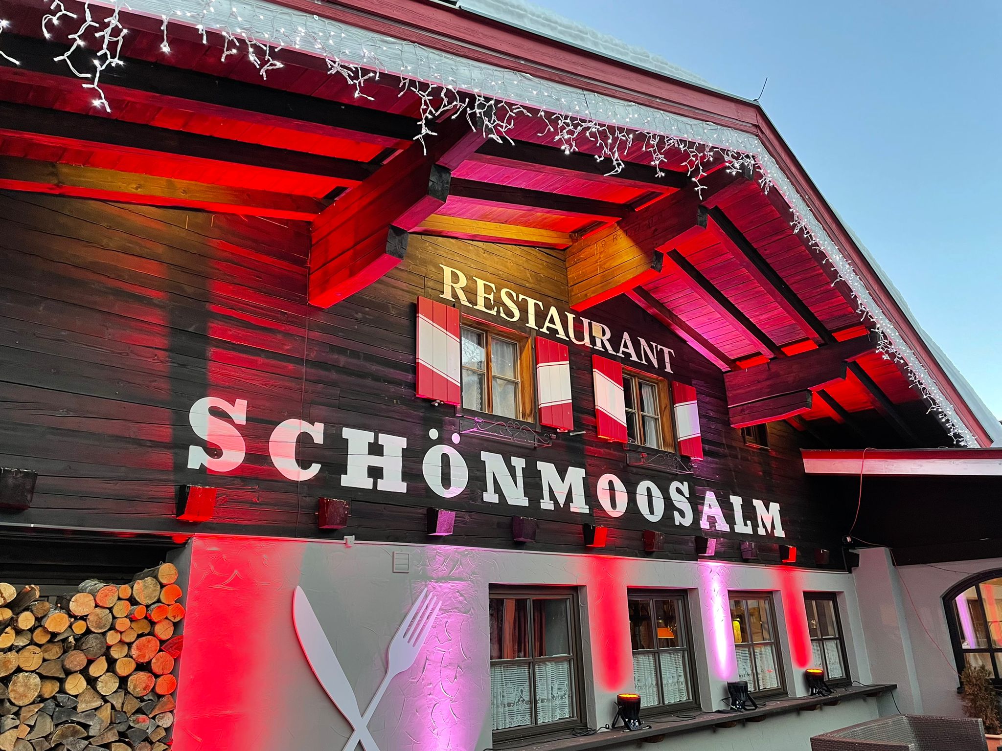 Egal ob traditionelle Schmankerln oder wahre Genuss Highlights - neben kulinarischen Köstlichkeiten bietet die SCHÖNMOOS ALM ein uriges Ambiente mit großer Sonnenterrasse, toller Aussicht zum Steinkopf und Rosskopf und einen Kinderspielplatz.