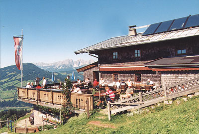 schöne Sonnenterrasse mit herrlichem Ausblick über 7 Ortschaften hinweg auf die Kitzbüheler Alpen und dem Wilden Kaiser