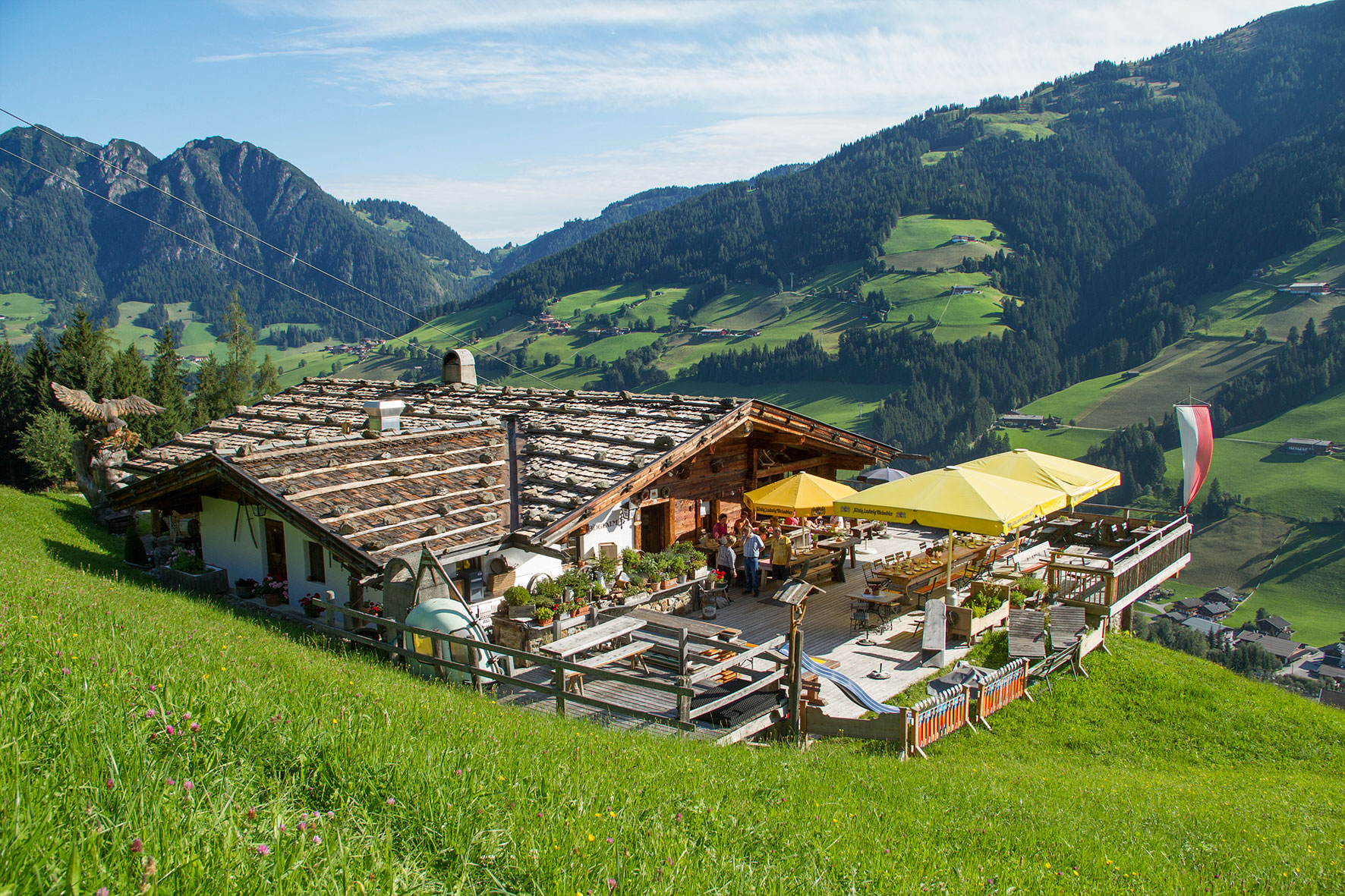 Geeignet auch für Veranstaltungen bis ca.150 Personen, große Sonnenterrasse, herrlicher Blick über Inneralpbach bis nach Alpbach.