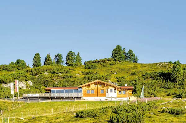 Steigung mit der Isskogelbahn bis zur Bergstation, von dort in ca. 5 min. zur Latschenalm.