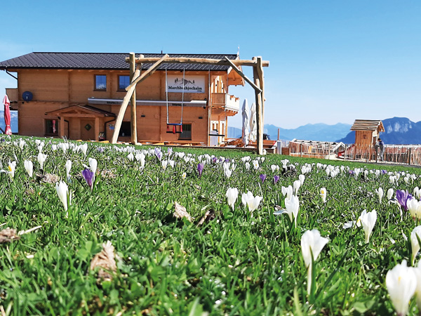 Neben der Aussicht von der Sonnenterrasse beobachtet man die Paragleiter direkt unterhalb der Hütte. Man hat auch die Möglichkeit Tandemflüge direkt vor Ort zu buchen.