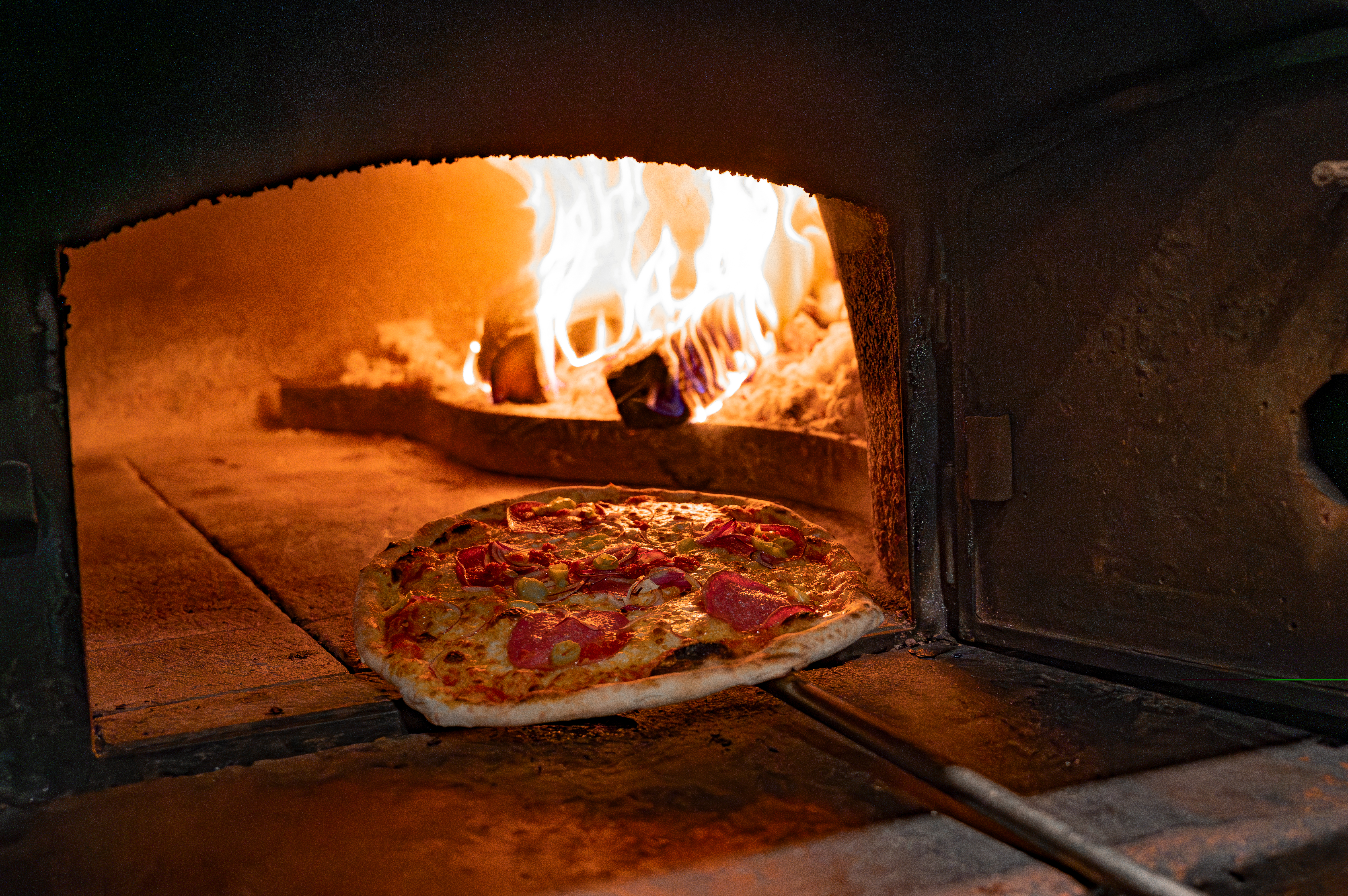 Alle Pizzen werden frisch im Holzofen gebacken. Es ist dieses knisternde Feuer, das jede unserer Pizzen diesen einzigartigen, rustikalen Geschmack verleiht. Ein Biss, und ihr seid sofort in den engen Gassen Roms oder auf einer sonnigen Piazza in Neapel.