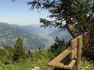 Zweigt man an der Wegkreuzung rechts ab, gelangt man in mehreren Serpentinen in ca. 1 Stunde nach Mayrhofen.