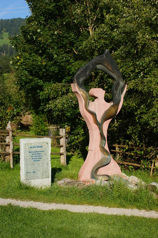 Der gemütliche Spazierweg der zwischen den Kirchdörfern Niederau und Oberau vorbei am Bergbauernmuseum verläuft, zeigt die Strophen an die Sonne, an das Universum, an den Wind und das Wetter, an das Wasser,